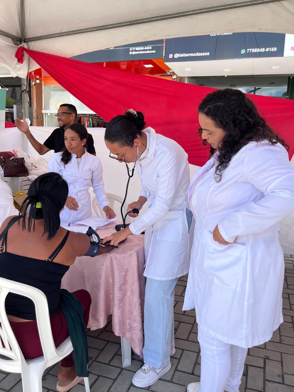 Durante toda a manhã, foram oferecidos diversos serviços gratuitos voltados à saúde, bem-estar e orientação, proporcionando um momento de acolhimento e informação. Entre os atendimentos disponibilizados estavam consulta médica, tipagem sanguínea, aferição de pressão arterial, serviços de estética, orientação jurídica e distribuição de brindes.